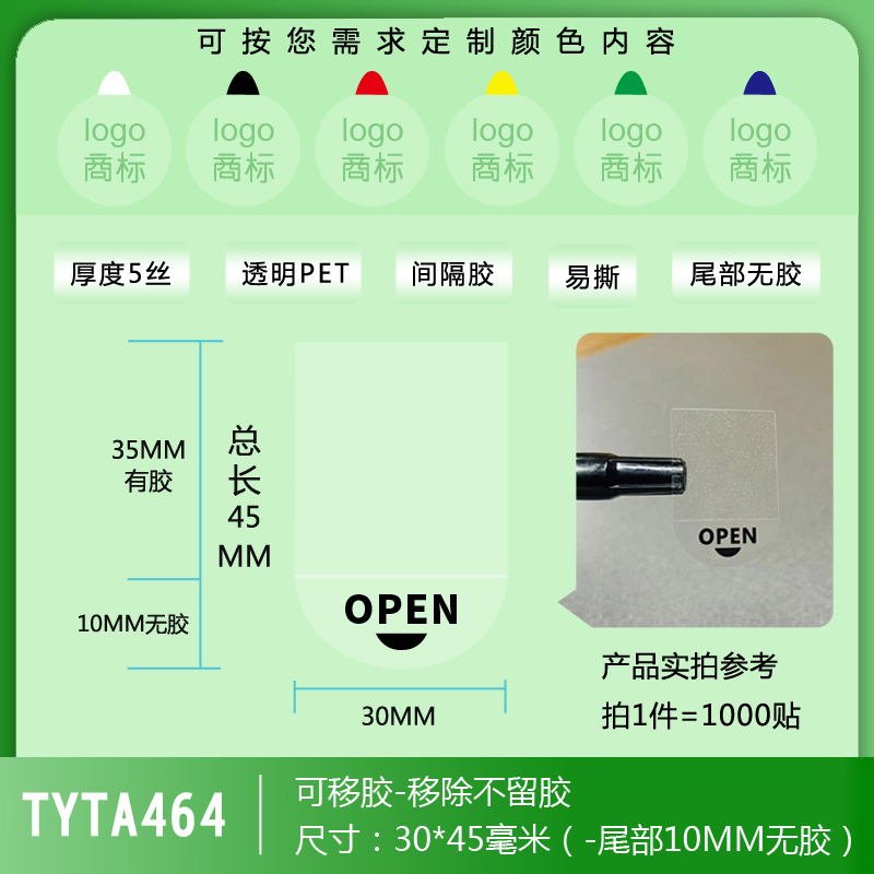 不干膠標簽貼紙透明封口貼奶茶外賣防水自粘手機封條易撕logo商標